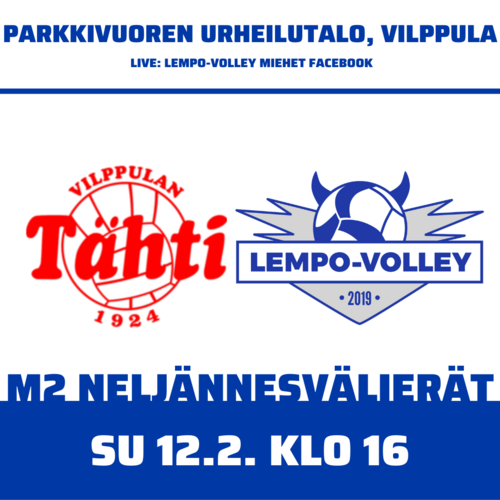 M2-joukkue aloittaa pudotuspelit sunnuntaina 12.2. Vilppulan Tähden vieraana. Kahdella voitolla pääsee puolivälieriin.