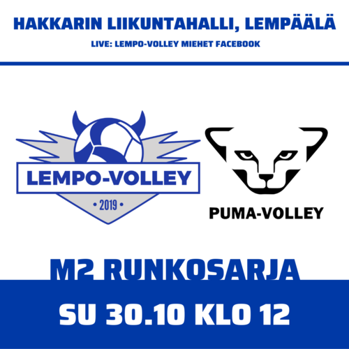 Su 30.10. miesten 2-sarjaa Lempo-Volley - PuMa klo 12 Hakkarissa