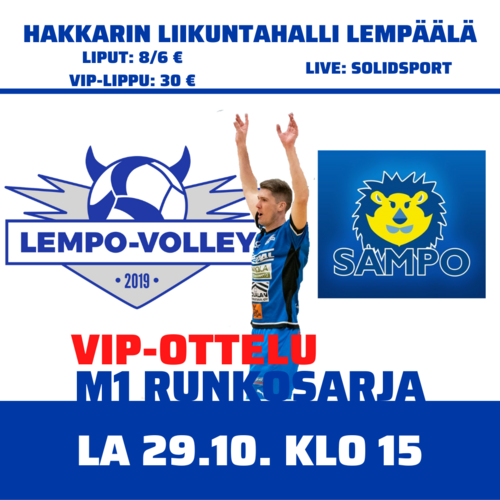 La 29.10. miesten 1-sarjaa Lempo-Volley - Sampo klo 15 Hakkarissa