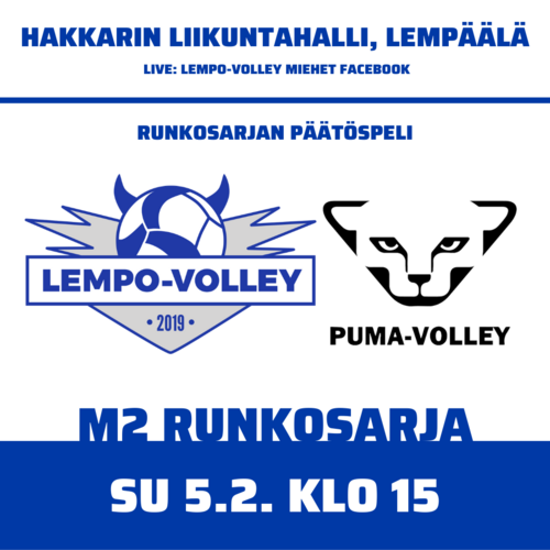 Miesten 2-sarjassa saadaan pakettiin runkosarja, kun päätöspelissä Lempo kohtaa sunnuntaina PuMa-Volleyn Hakkarissa. Lempo jatkaa pudotuspeleihin, mutta tiukassa lohkotilanteessa jokainen piste voi vaikuttaa tulevaan vastustajaan.