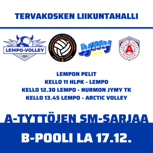 A-tytöt matkaavat Tervakoskelle ja pelaavat HLPK:ta, Nurmoa ja Arctic Volleyta vastaan.