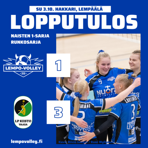 Lähellä oli ensimmäinen sarjapiste Lempolla naisten 1-sarjassa, mutta lopulta Vaasan Kiisto vei kaikki tarjolla olleet kolme. Kiistolle voitto 3-1 (25-22, 25-22, 20-25, 30-28).