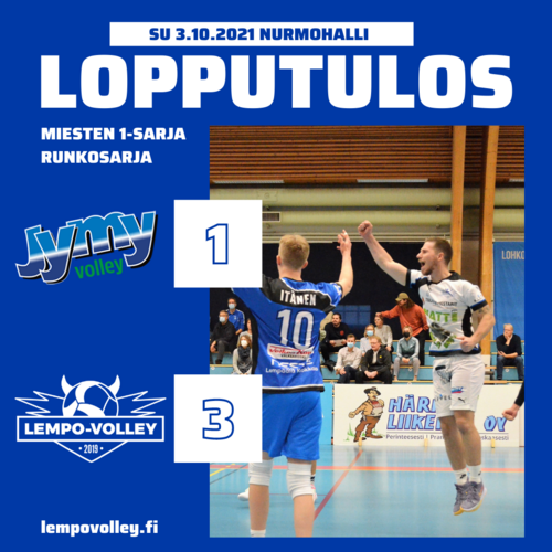 M1 RUNKOSARJA: NURMON JYMY – LEMPO-VOLLEY 1–3 (15–25,22–25, 27–25, 17–25)