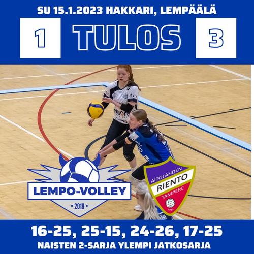 Naisten 2-sarjassa Lempo kohtasi Sääksjärvellä Aitolahden Riennon. Kokeneempi AitRi voitti 3-1 (25-16, 15-25, 26-24, 25-17). Lempolla Tessa Francke teki isoimmat pisteet 14.