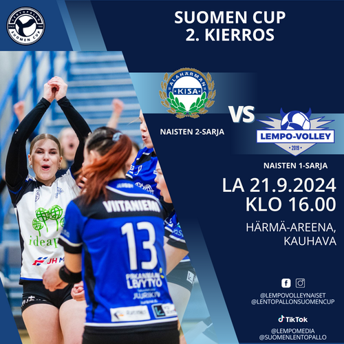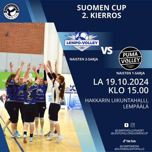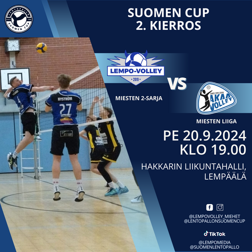 Lempo-Volleyn miesten ja naisten 1- ja 2-sarjajoukkueet pelaavat lentopallon Suomen Cupissa.