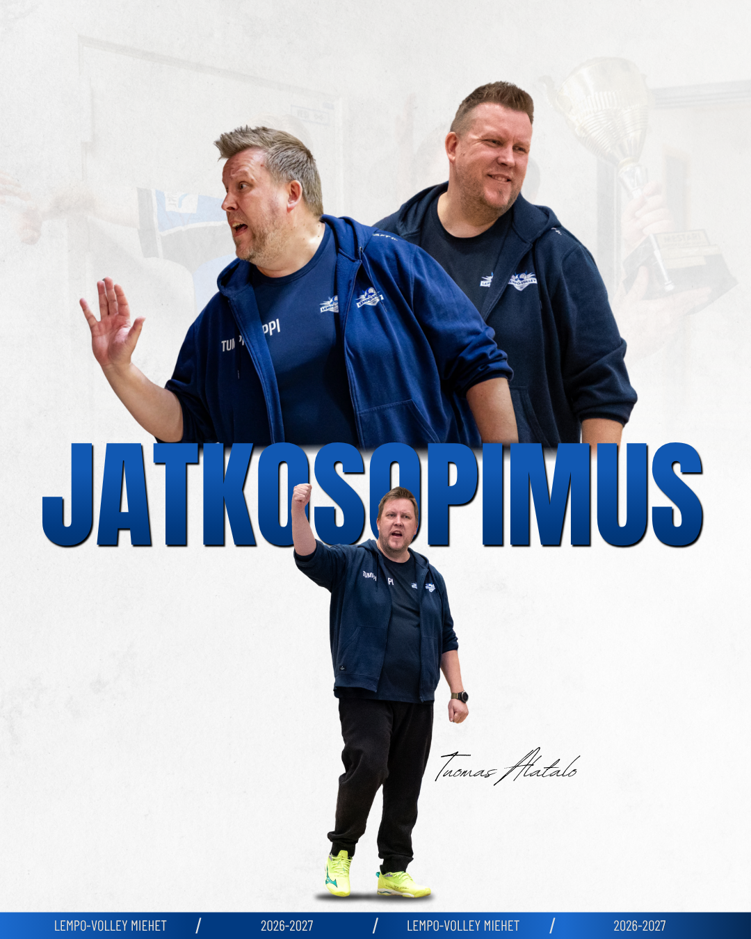 Tuomas Alatalo jatkaa Lempo-Volleyn miesten 1-sarjajoukkueen päävalmentajana 1-vuotisella sopimuksella kaudella 2026–27. Kaksinkertaisella mestarivalmentajalla alkaa kaikkiaan viides kausi Lempon miesten edustuksen päävalmentajana.