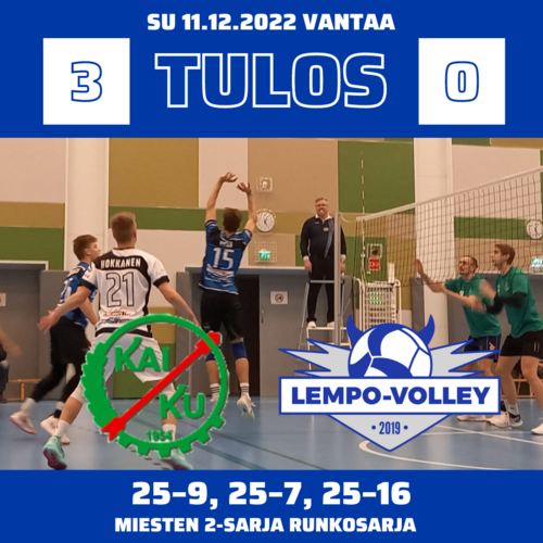 Sunnuntaina molemmille tuli tappito, kun naisten 2-sarjassa Lempo hävisi kotikentällään Vesilahden Visalle 3-0 ja miesten 2-sarjassa Lempo hävisi vieraissa Keimolan Kaiulle 0-3.